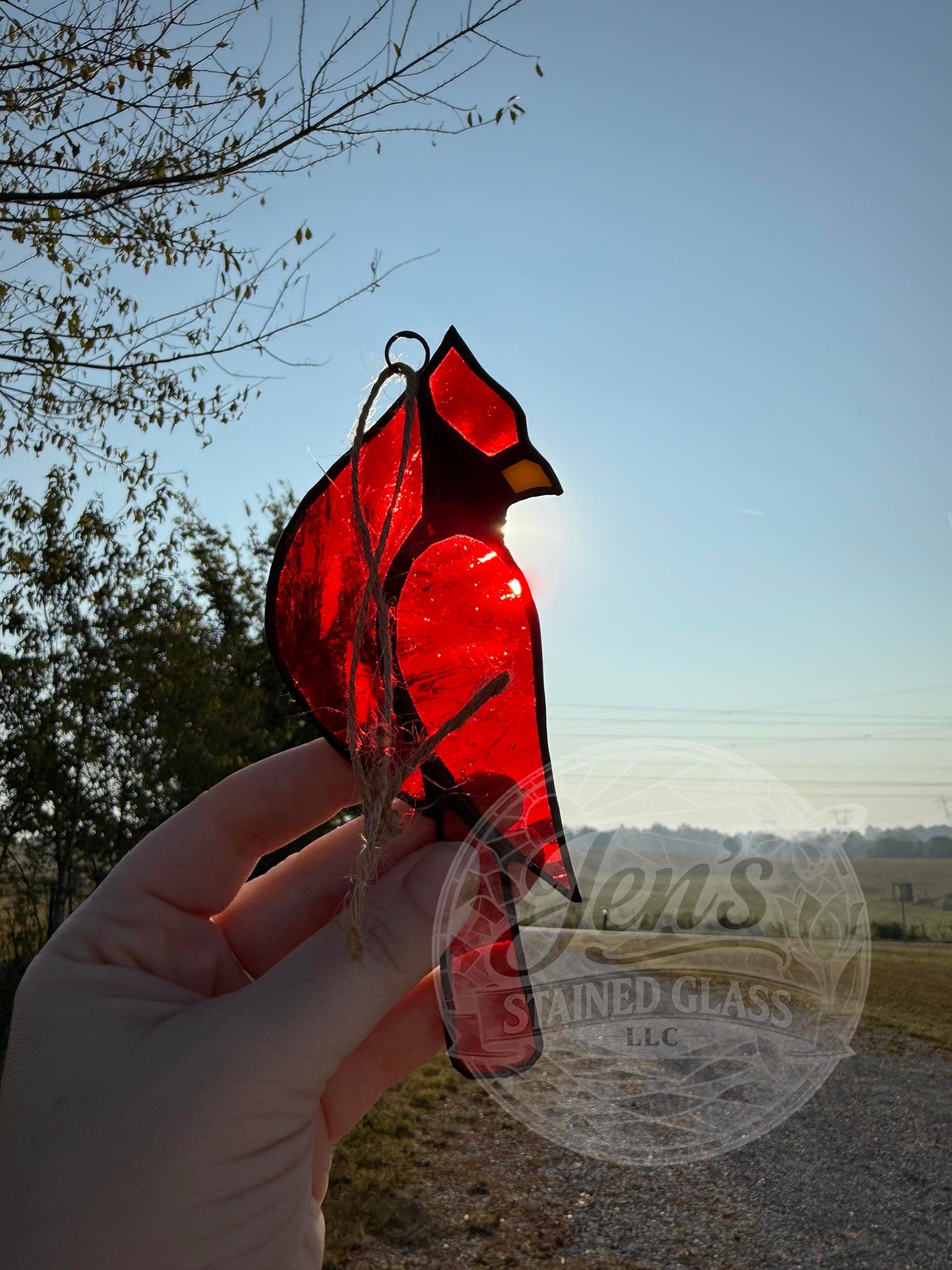 Heavenly Cardinal Stained Glass Blue and Clear Rays